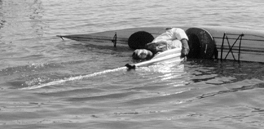 Don't forget your body floats (when it's in the water). Pay strict attention to the paddle angle ...that's what your trying to practice. In the shallows you can easily get yourself up in the sand. If you're using a Greenland paddle allow the bouncy of the wood to work for you. Get a lot of the paddle immersed with a very low angle to the water. Conventional paddle users can extend the paddle out by shifting your grip down the shaft or by holding the end of the blade as on a Extended Paddle Roll. This will also allow you to get the paddle low to the water surface. Not everybody is comfortable holding the blade, but for many it's a good way to get started. There's a distinct tendency to go faster as the weight on the paddle is increased. This is natural. However, try not to decrease the distance you're traveling back and forth. A good three foot sweep or better is about right. Many desperate and frustrated paddlers get the paddle going extremely fast with about a 1 foot travel only to find they sink. If you find you're working too hard, ease up and pay more attention to your climbing blade angle. If you have a roll, you can also set up, come around for your roll and scull on the surface instead. Wear a dive mask so you can clearly watch your paddle blade. Many times you'll come up to the surface but won't be able to sustain it comfortably. The ability to scull without straining will only come after the wrist movement is fully developed. Also watch for that subconscious attempt to lift your neck. Keep your head in the water with the water level across your face! Body languageThe third and equally important part of the technique is body and boat angle. As you gradually get lower and lower with your attempts, the boat wants to travel with you. When you're finally over on your side, you must push the boat angle away. Don't allow the kayak to topple over on you. The ideal position is to have the kayak leaning slightly back toward it's normal stance. Everyone's different and flexibility comes into play here. Most importantly, your bracing and fit in the kayak is key. Use your hips and thighs or feet to twist it away. In the beginning when you need every trick in the book, be conscious of this. Look inside other boats. Good paddlers always have them well padded which allow them to twist the boat and not slip out.